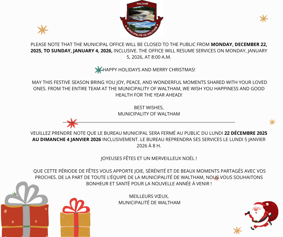 Heures d’ouverture du bureau municipal pendant les jours fériés