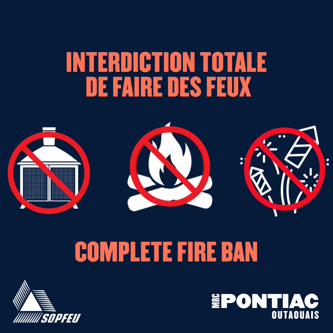 Restez au courant des informations importantes et des CONSEILS sur la prévention des incendies et les INTERDICTIONS D’INCENDIE à L’Isle-aux-Allumettes, Chichester et Sheenboro.